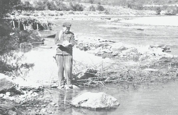 1978年,陳述彭在騰沖現場考察溫泉噴口的石灰華。地理所供圖