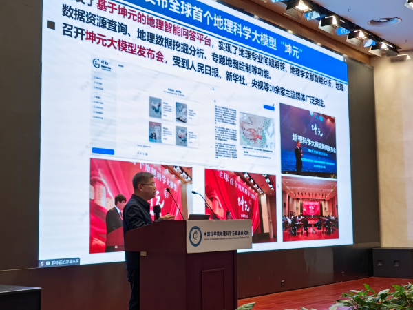 會議由實驗室主任蘇奮振主持并致開幕辭。他表示,2024年實驗室積極進取,奮力前行,獲得了卓著成果。隨后,他從年度亮點成果、隊伍建設、主要研究進展、科研成果、項目情況、科技獎勵、學術會議、文體活動等方面對2024年度實驗室的工作進展進行了回顧總結。本年度實驗室完成重組工作,發布全球首個地理大模型“坤元”,發表Science、Nature子刊和Science子刊及領域頂刊等重要論文13篇,人才梯隊建設得到良好發展。